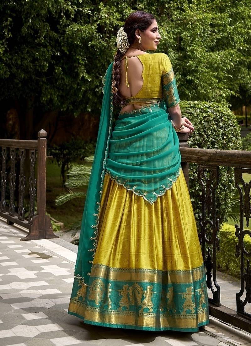 | Product Name | Traditional Yellow Poly Cotton Half Saree With Zari Weaving Work Lehenga Choli | |