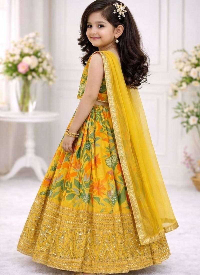 | Product Name | Yellow Georgette Digital Printed Wedding Kids Lehenga Choli | |