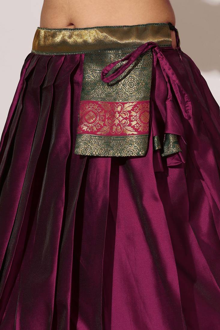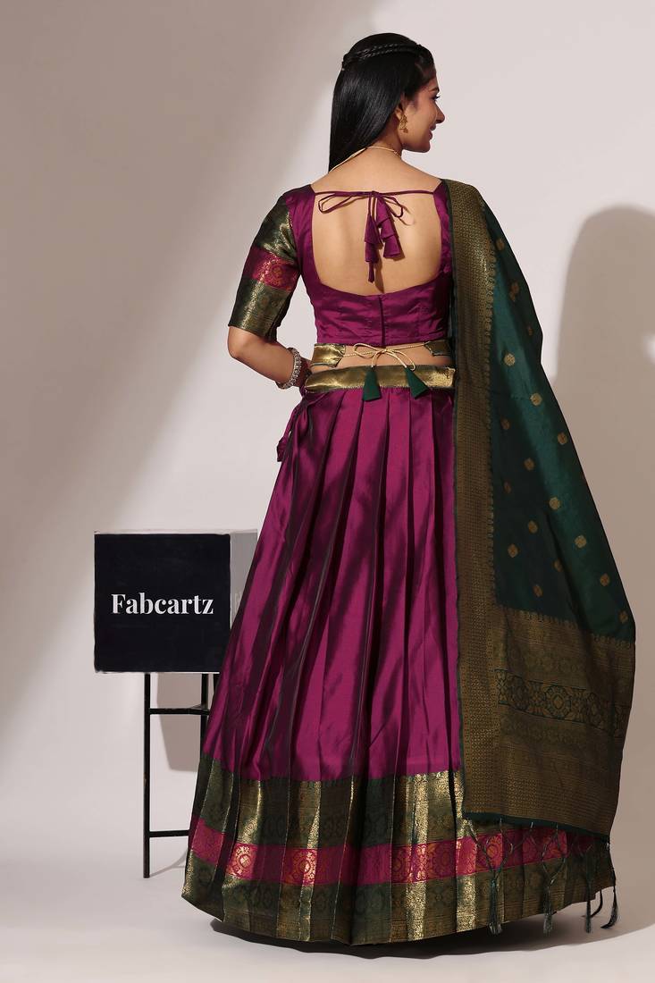 Beautiful south indian style semi-stitched half saree with blouse and banarasi dupatta for women
