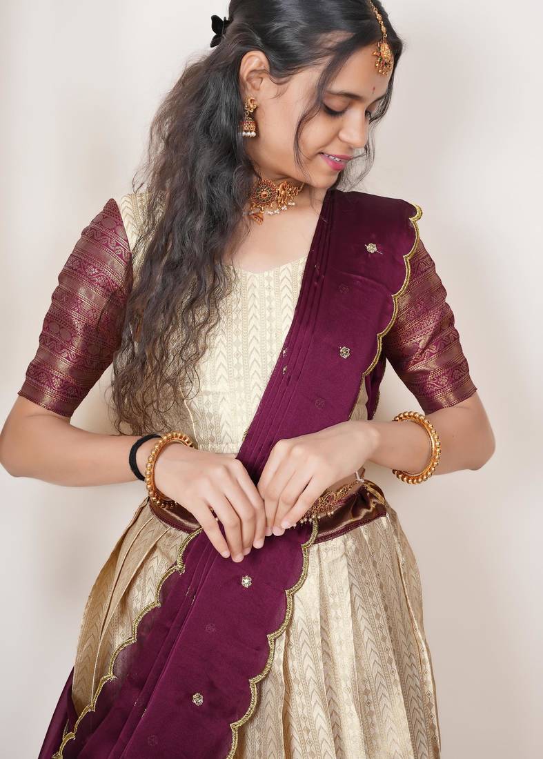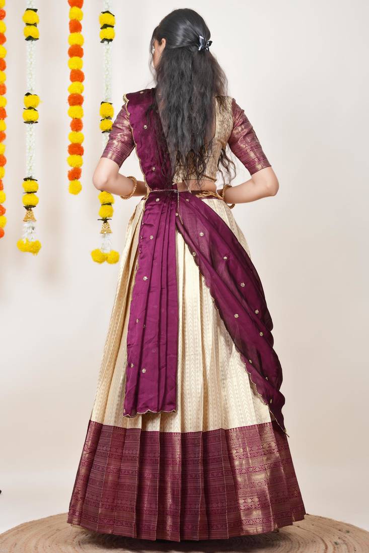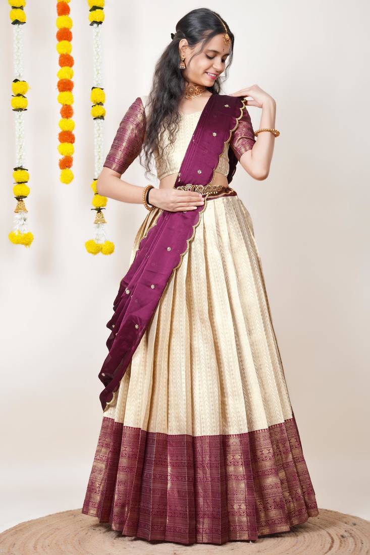 Beautiful south indian style semi-stitched half saree with blouse and dupatta for women