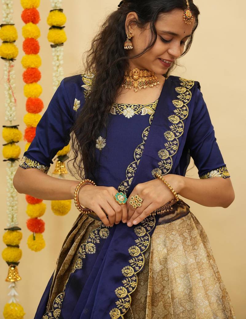 | Product Name | Beautiful South Indian Style Semi Stitched Half Saree With Blouse And Dupatta For Women | |