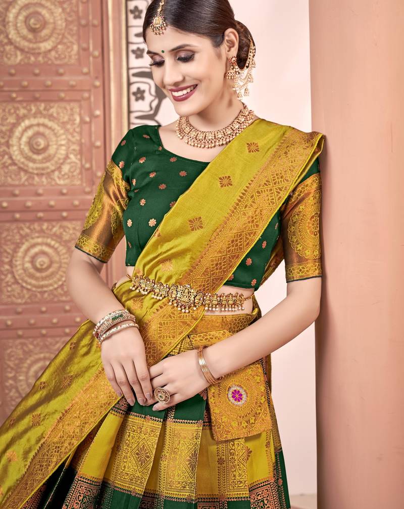 Beautiful south indian style semi-stitched half saree with blouse and dupatta for women