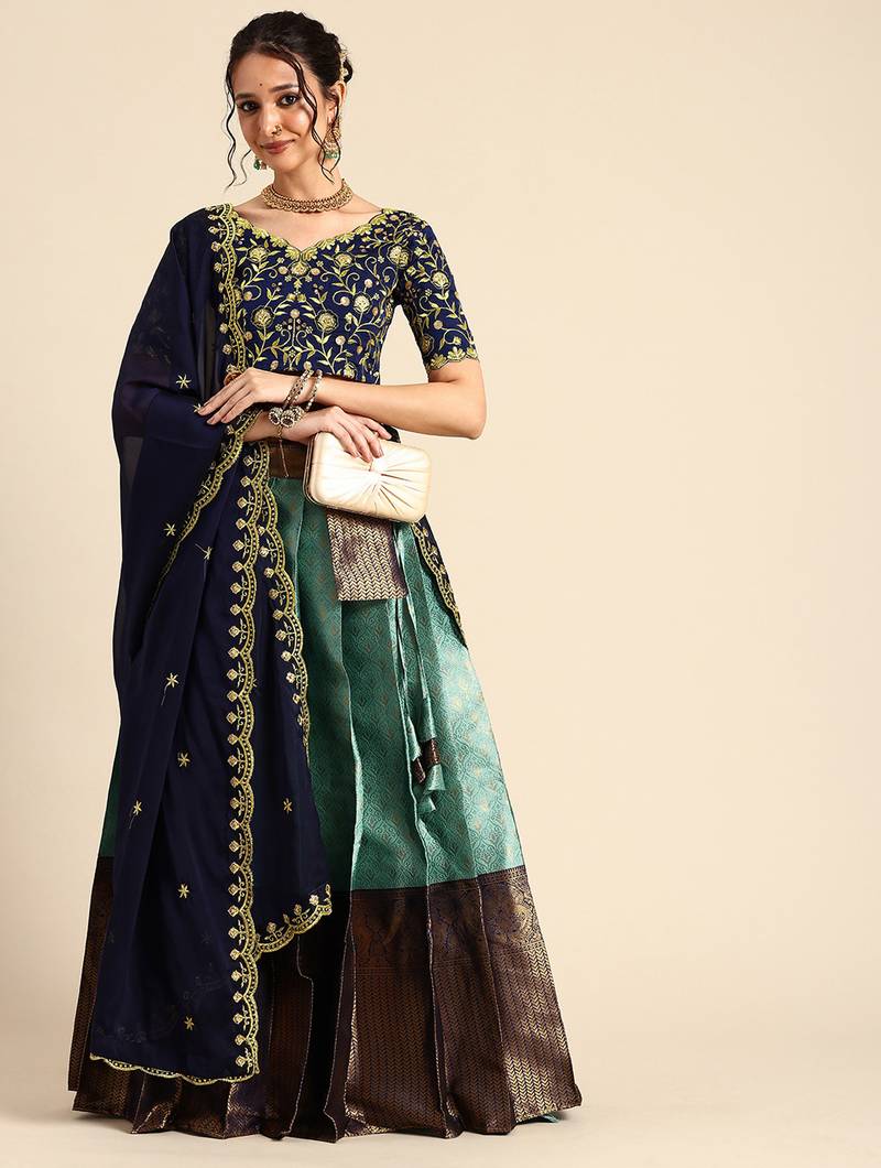 | Product Name | Blue Embroidered Satin Lehenga Choli | |