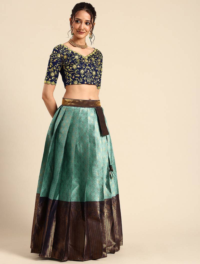 | Product Description | "Fabric: Lehenga Fabric : Lichi Silk Zari Work Choli Fabric: Taffeta Dupatta Fabric: Rangoli Silk Pattern: Lehenga: Woven Design Blouse: Embroidery Work Stitch Type Lehenga Is Semi Stitched Choli Is Unstitched Length : Lehenga Length 42 Inch (Semi Stitched) Lehenga Waist Size – Upto 40 Inch Lehenga Flair 3.6 M Blouse 1 M Dupatta 2.40 M Ready To Ship." |