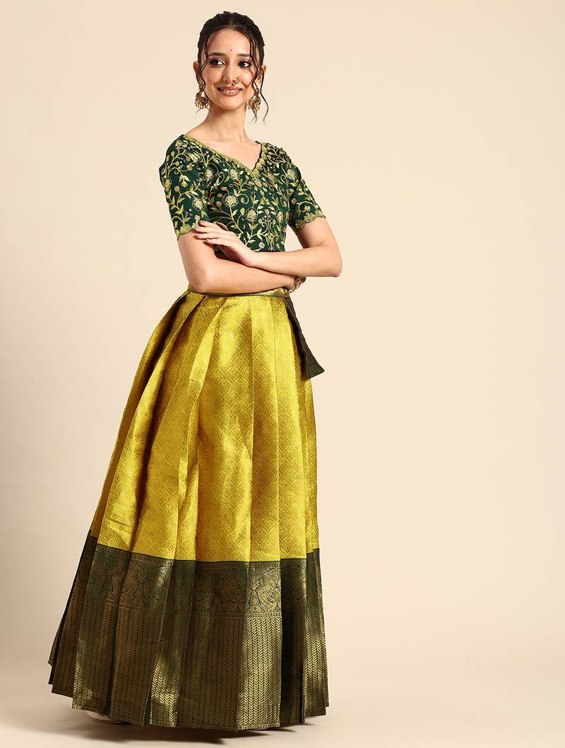 | Product Description | "Fabric: Lehenga Fabric : Lichi Silk Zari Work Choli Fabric: Taffeta Dupatta Fabric: Rangoli Silk Pattern: Lehenga: Woven Design Blouse: Embroidery Work Stitch Type Lehenga Is Semi Stitched Choli Is Unstitched Length : Lehenga Length 42 Inch (Semi Stitched) Lehenga Waist Size – Upto 40 Inch Lehenga Flair 3.6 M Blouse 1 M Dupatta 2.40 M Ready To Ship." |