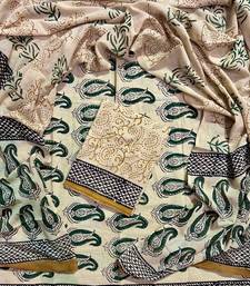 Beige hand block printed cotton suit with kota doriya dupatta unstitched