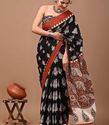 Black soft mul cotton saree with unstiched attached blouse piece