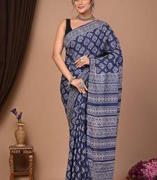 | Product Name | Blue Cotton Hand Block Printed Mulmul Sarees With Attach Printed Blouse | |