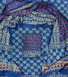 Blue hand block printed cotton suit with kota doriya dupatta unstitched