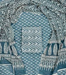 Green hand block printed cotton suit with kota doriya dupatta unstitched