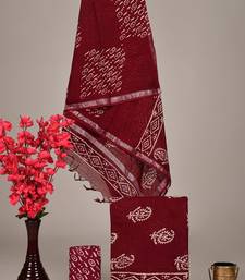 Maroon bagru hand block printed linen suits with zari border unstitched