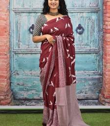 Maroon soft mul cotton saree with unstiched attached blouse piece