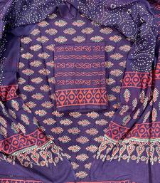 Navy blue hand block printed cotton suit with kota doriya dupatta unstitched