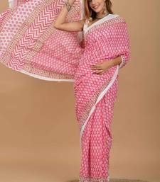 Pink soft mul cotton saree with unstiched attached blouse piece