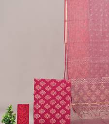 Purple hand block printed cotton suit with kota doriya dupatta unstitched