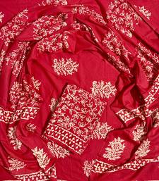 Red hand block printed cotton suit with kota doriya dupatta unstitched
