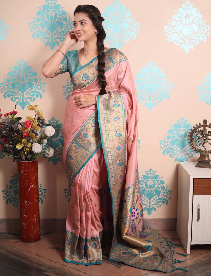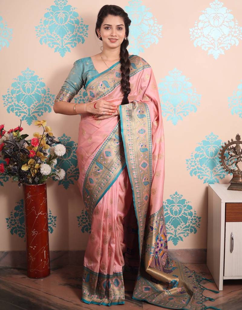 Product Name | Baby Pink Paithani Saree With Unstiched Blouse | |