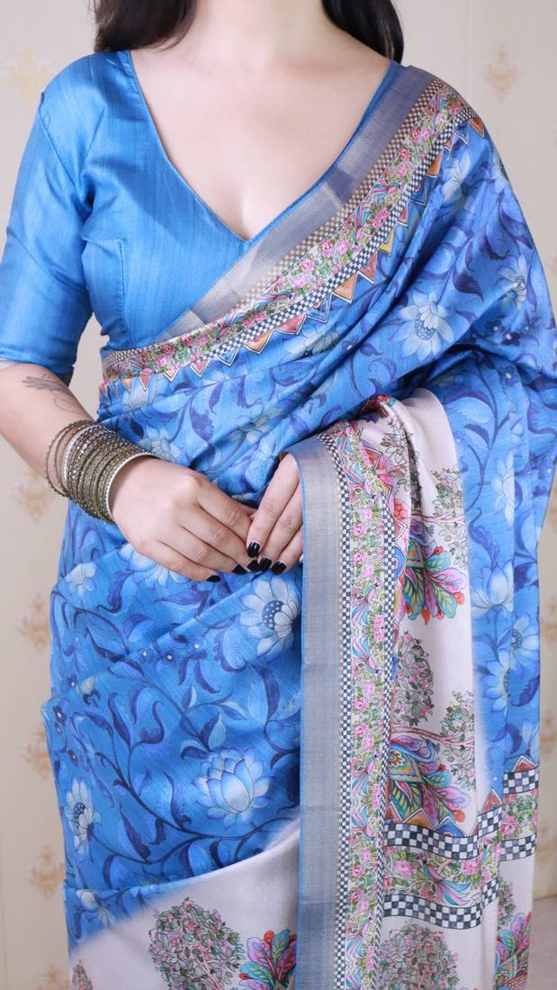 Product Name | Blue Tussar Art Silk Saree With Unstiched Blouse | |