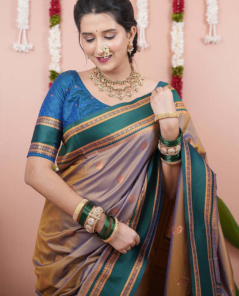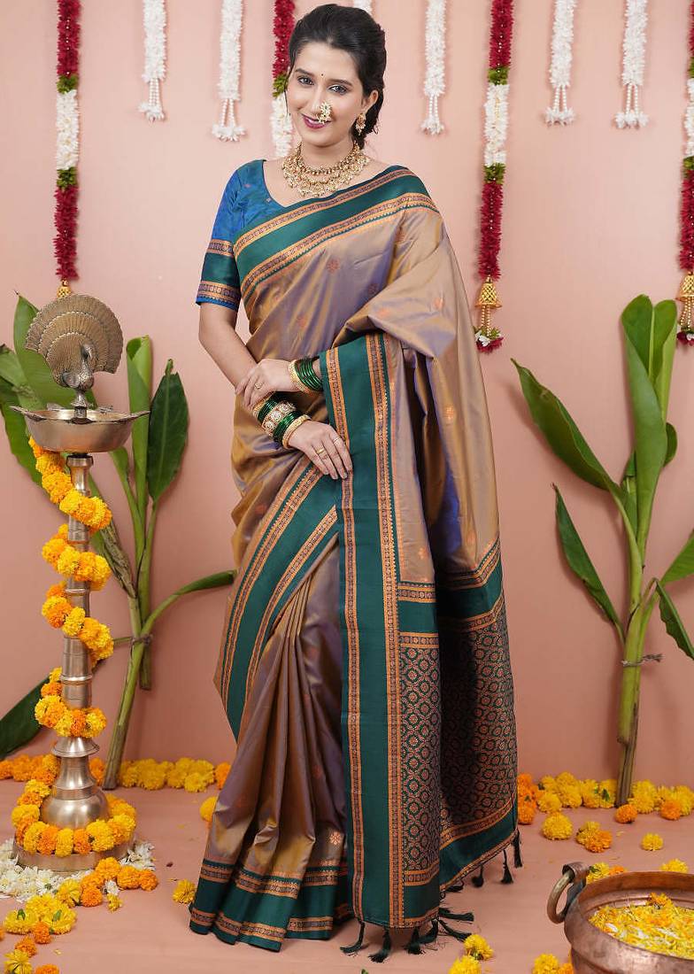 • | Saree | : | Color- Brown / Fabric- Silk Blend |