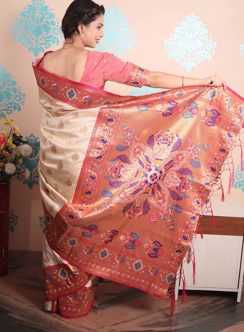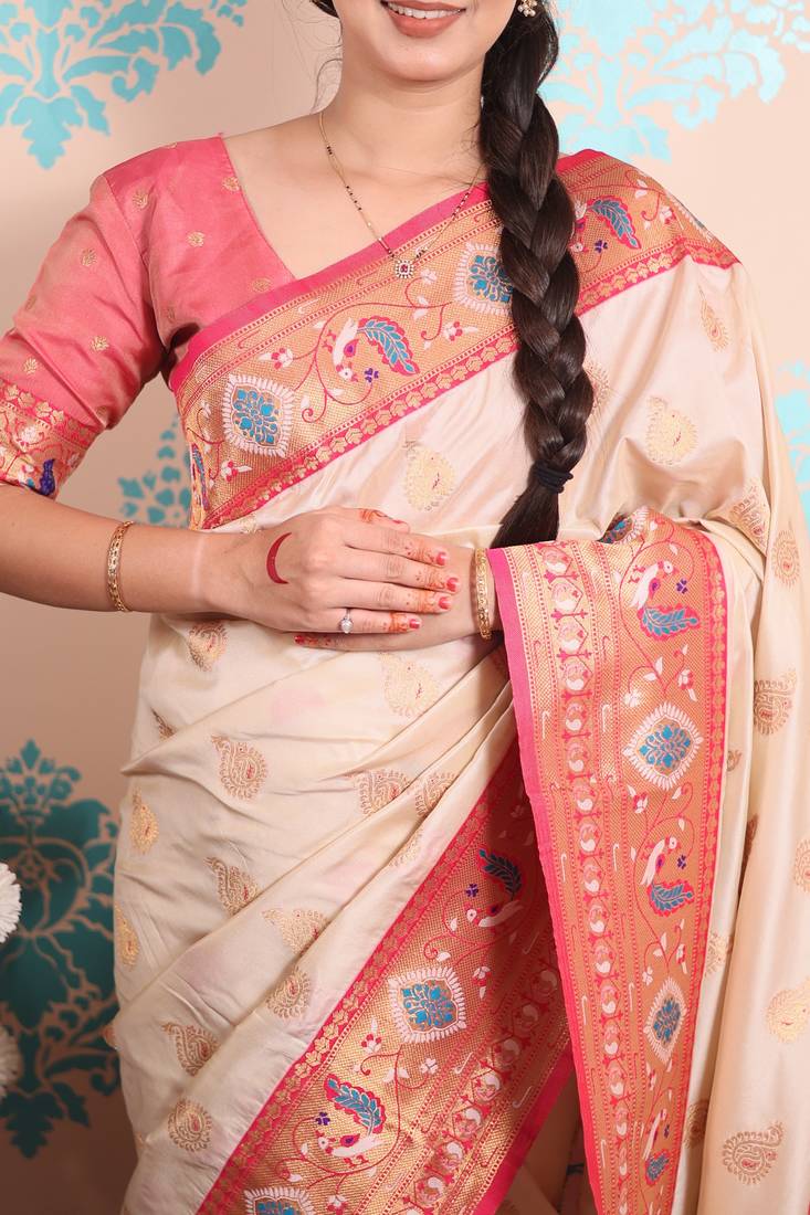 Product Name | Cream Paithani Saree With Unstiched Blouse | |