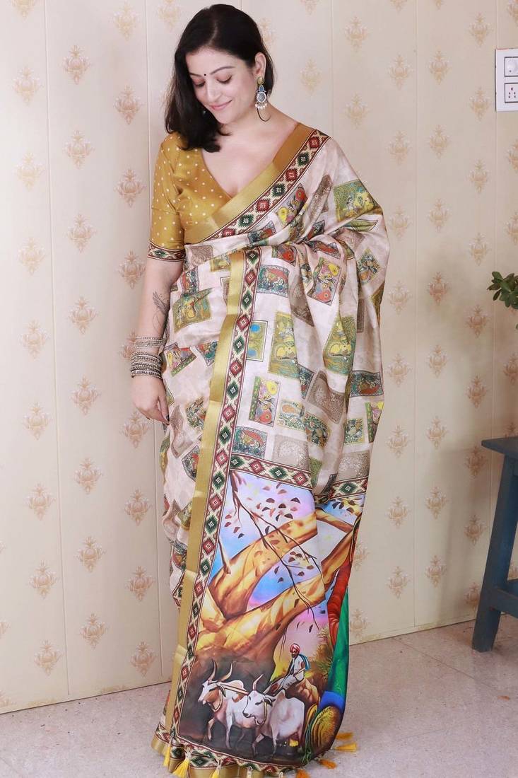 • | Saree | : | Color- Gold / Fabric- Silk Blend |