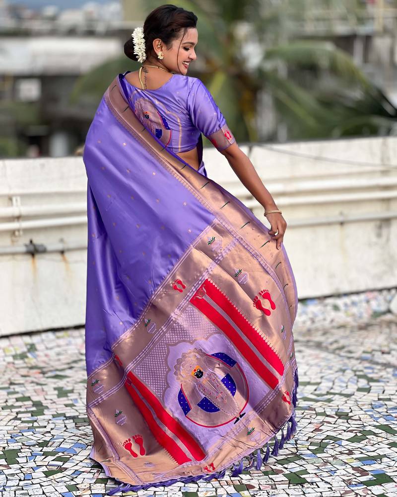 Lavender soft art silk saree with unstiched blouse