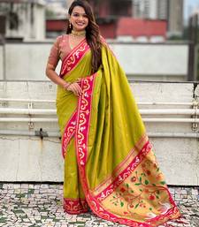 Mehendi paithani saree with unstiched blouse