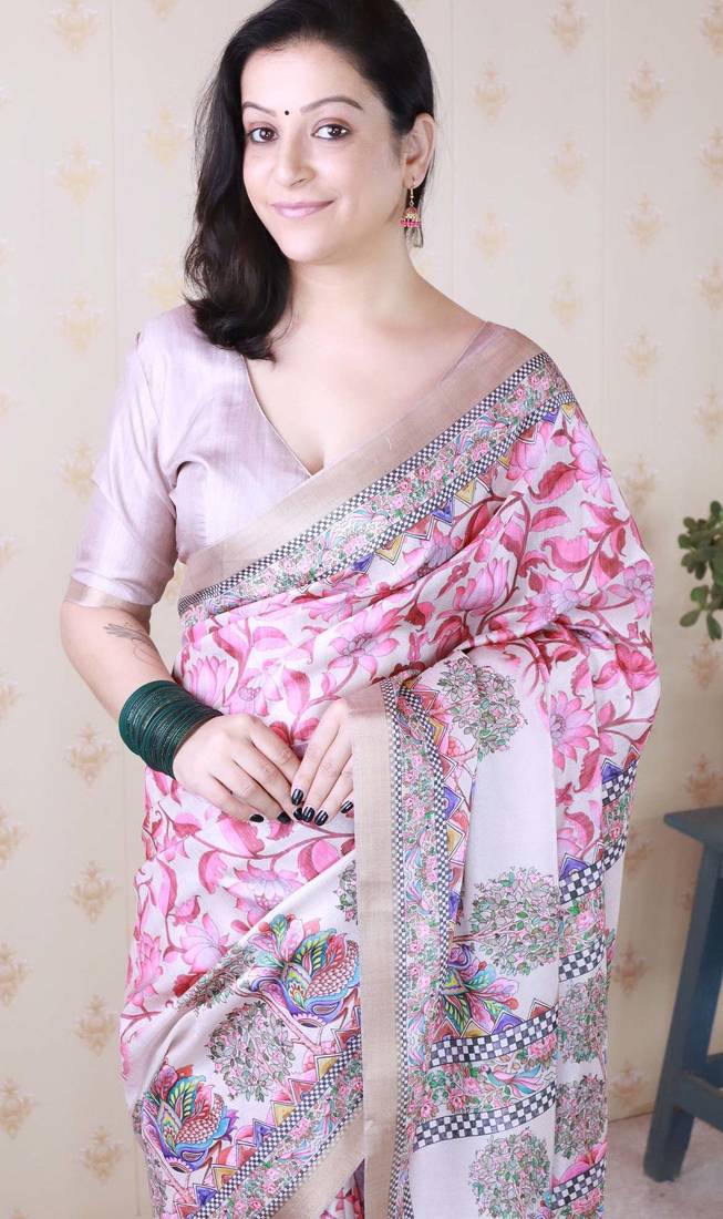 Multi color tussar art silk saree with unstiched blouse