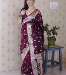 Purple banarasi soft art silk saree with unstiched blouse