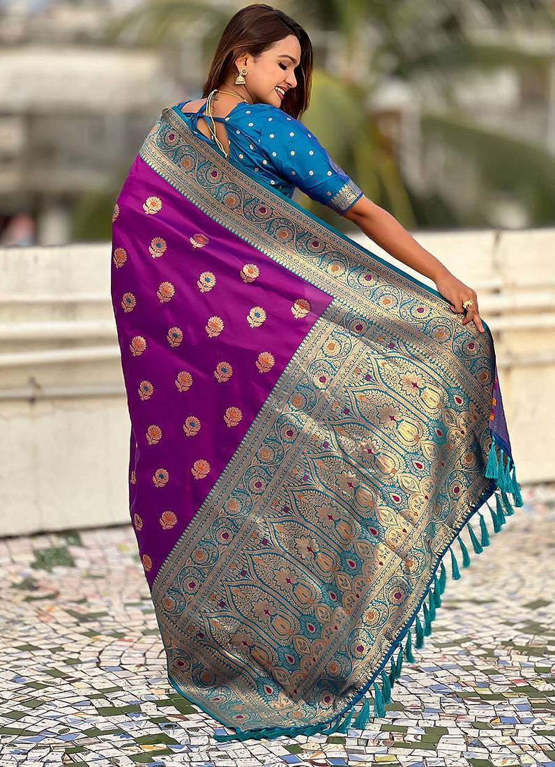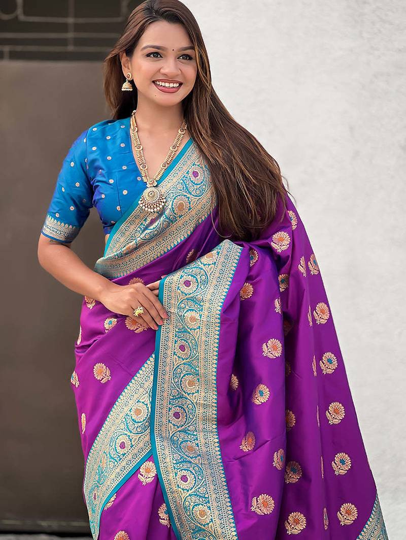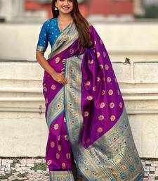 Product Name Purple Soft Art Silk Saree With Unstiched Blouse