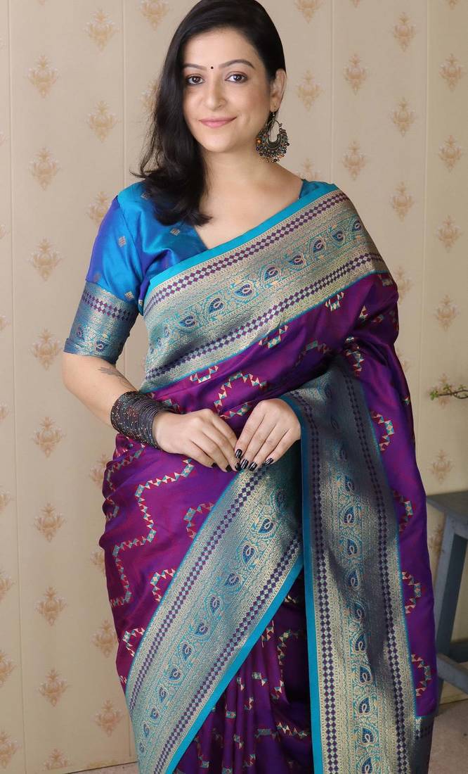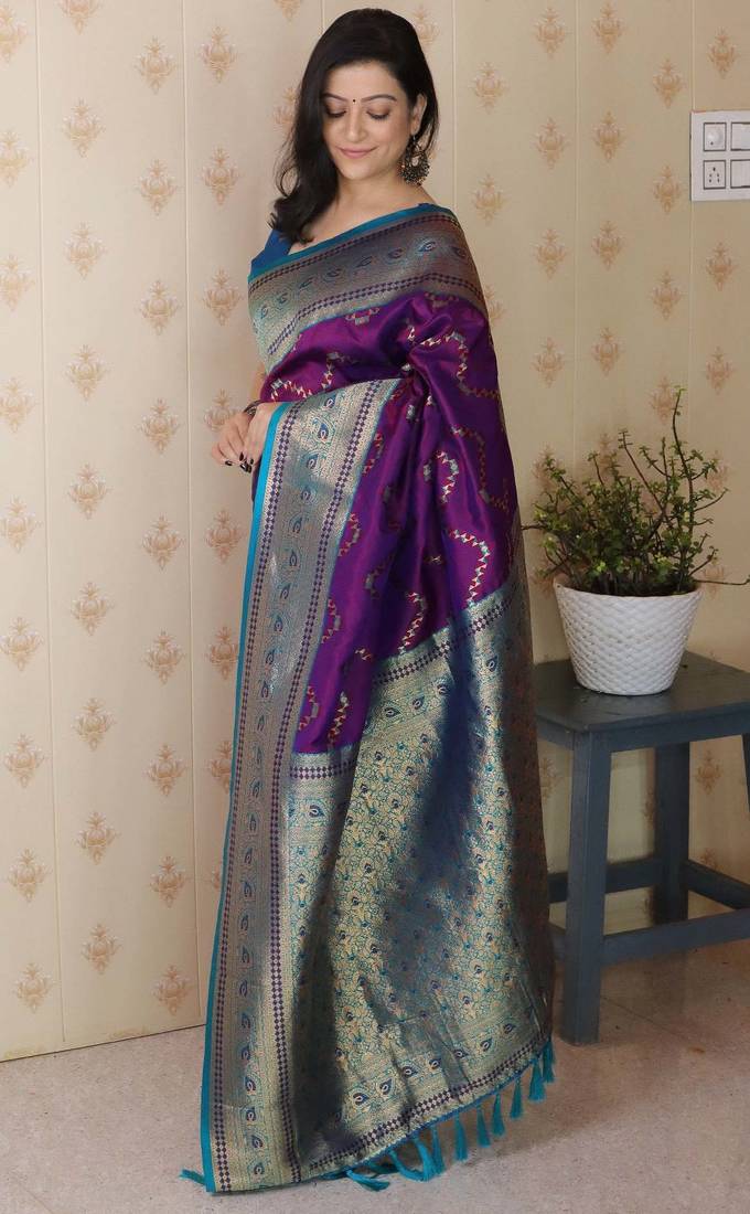 Product Name Violet Banarasi Soft Art Silk Saree With Unstiched Blouse