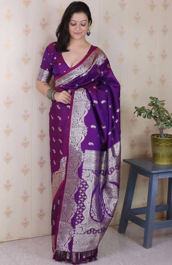 | Product Name | Violet Banarasi Soft Art Silk Saree With Unstiched Blouse | |