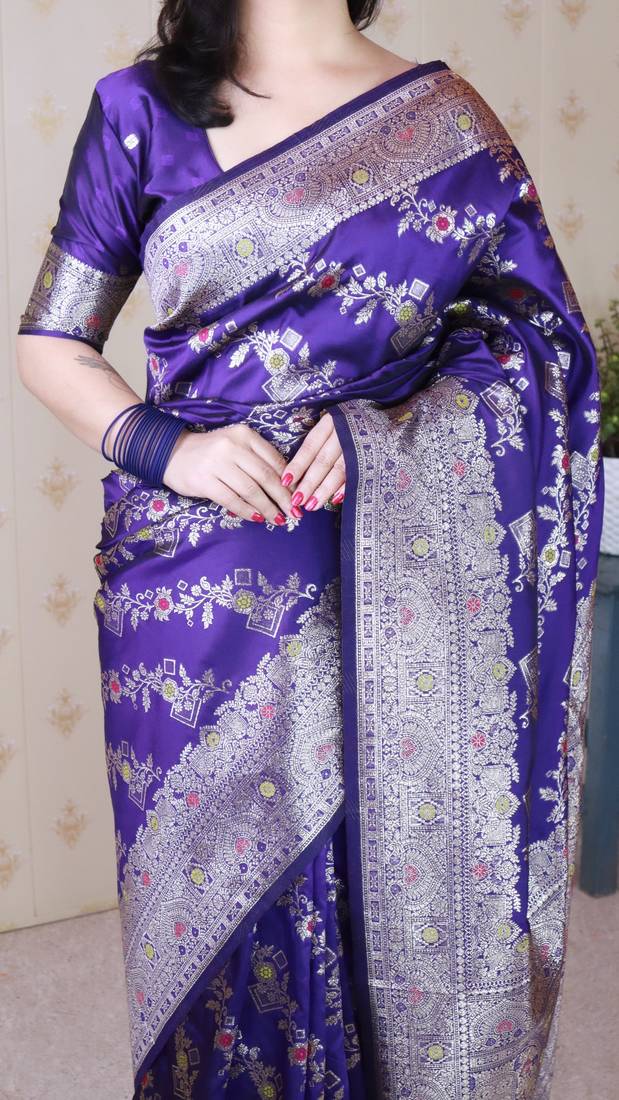 | Product Name | Violet Banarasi Soft Art Silk Saree With Unstiched Blouse | |