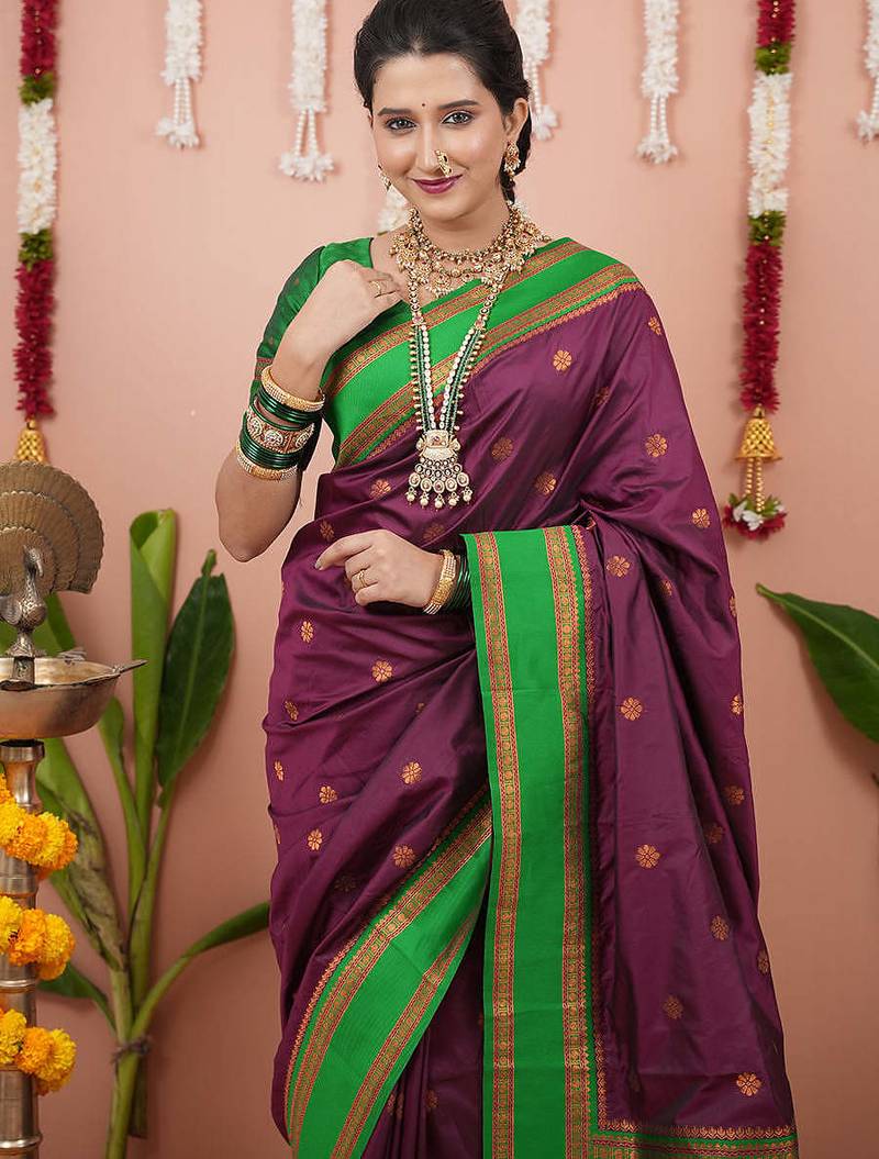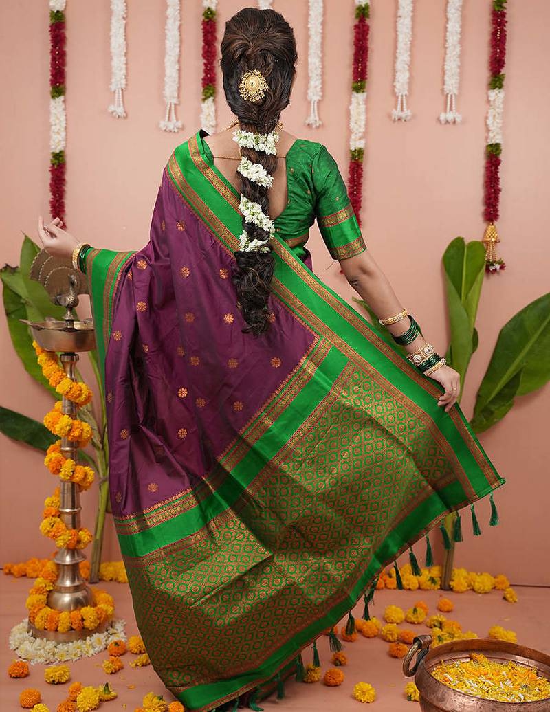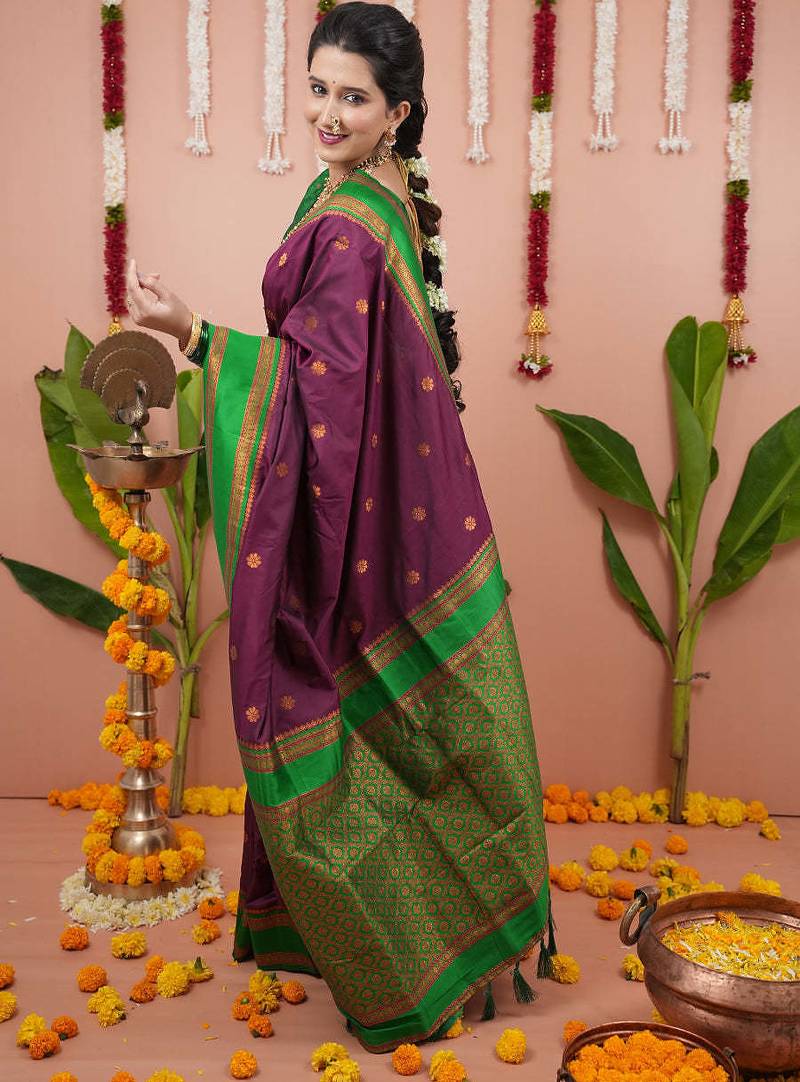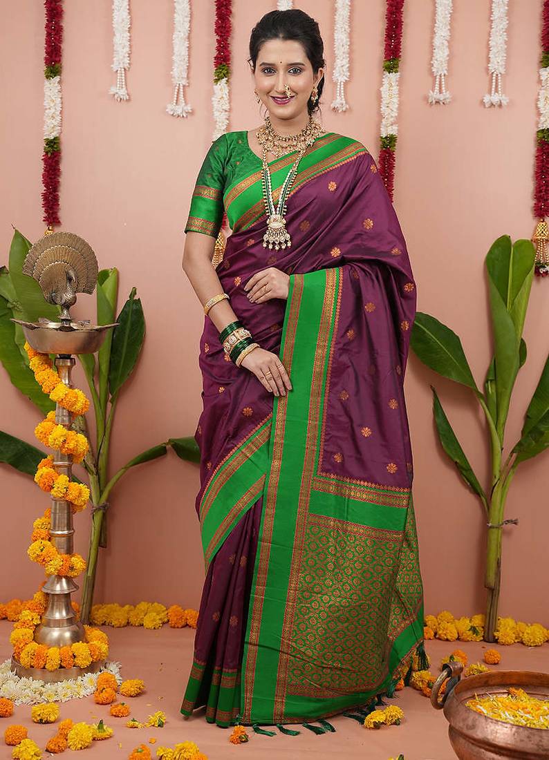 Wine green soft art silk saree with unstiched blouse