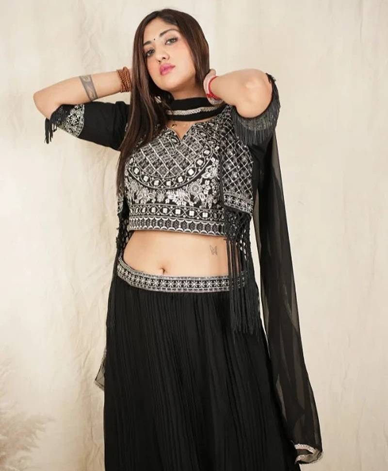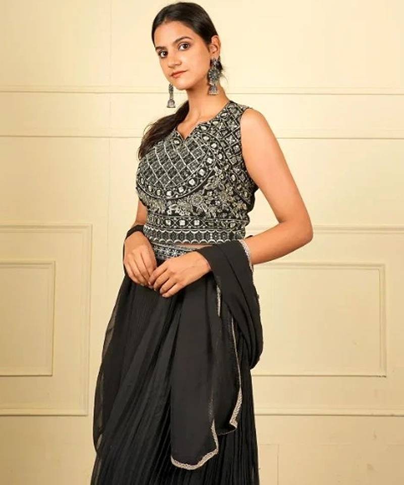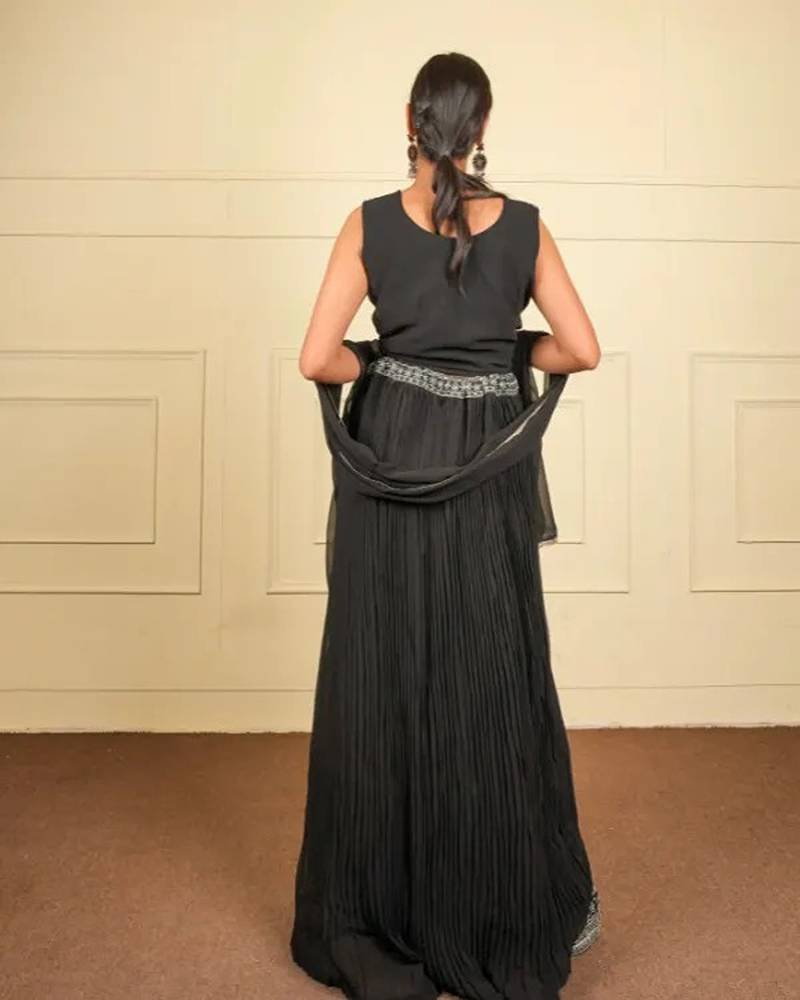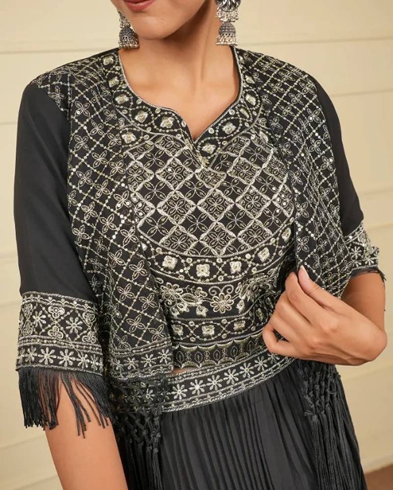 | Product Name | Black Soft Georgette Intricate Threadwork Free Size Co Ord Set | |