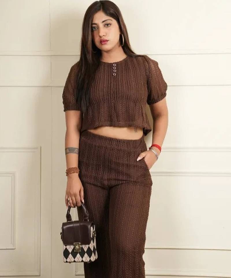 | Product Name | Rust Brown Korean Net Net Free Size Co Ord Set | |