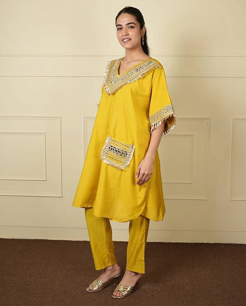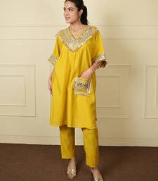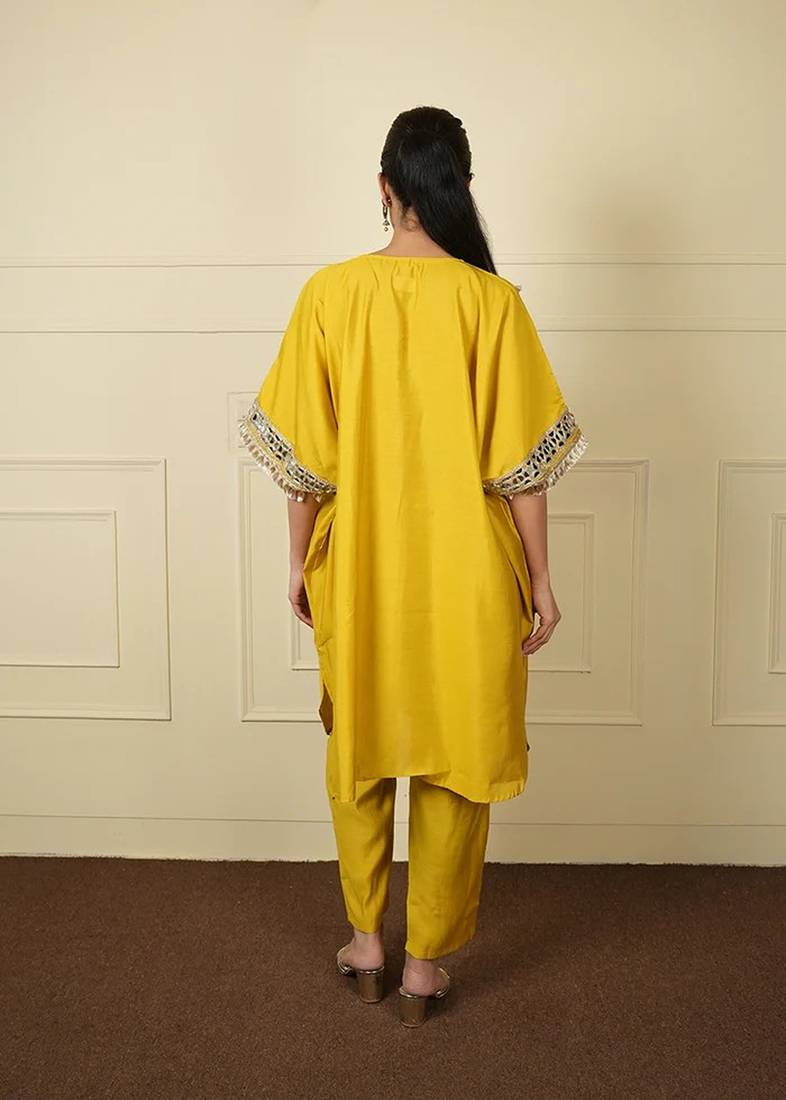 | Product Name | Yellow Silk Blend Plain Loosekaftanpantcoord Set | |