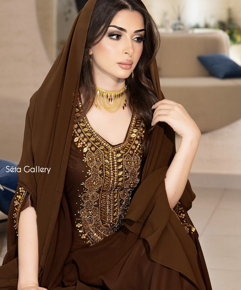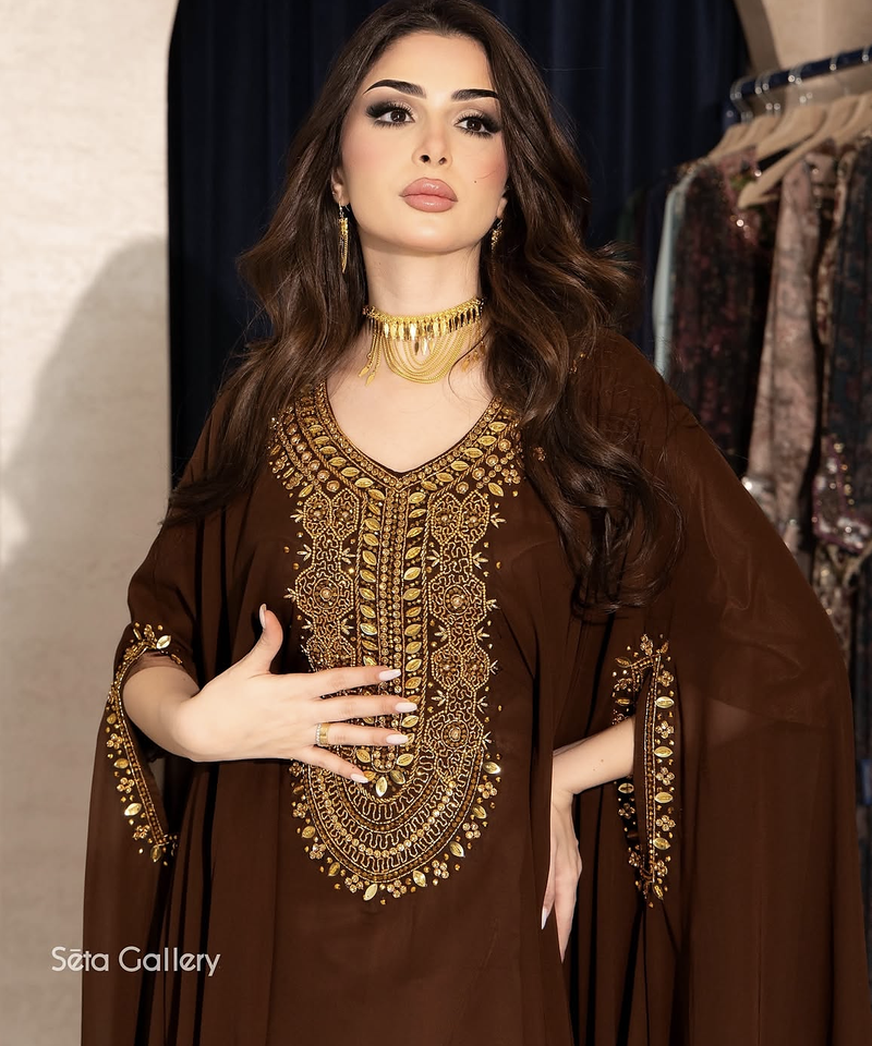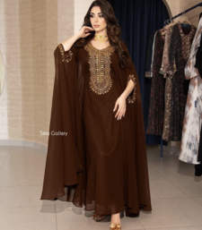 Product Name Brown Ethnic Stitched Handworking Embroidered Moroccan Style Kaftan Abaya For Women – Elegant Party Wear