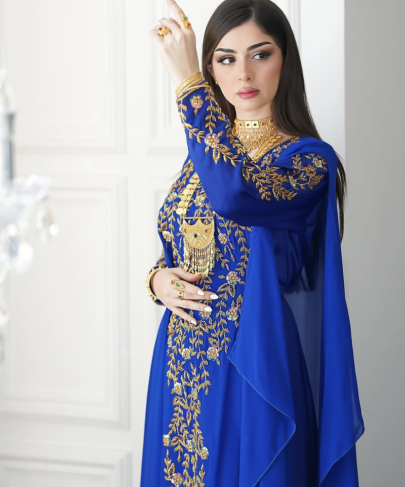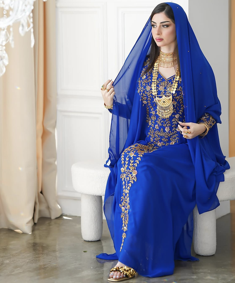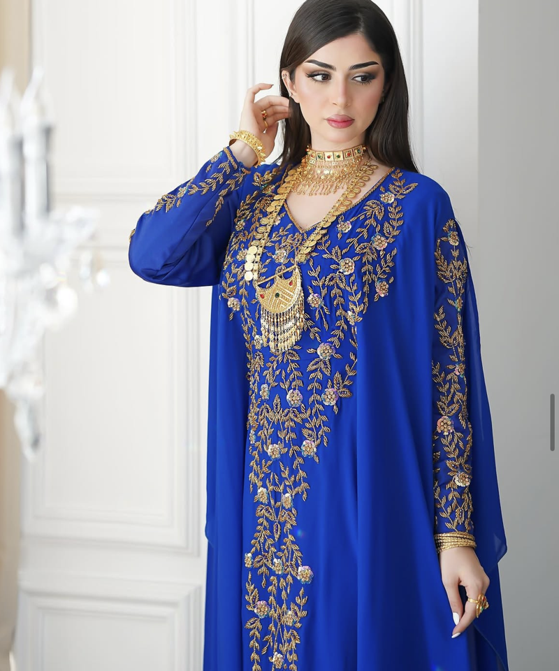 | Product Name | Royal Blue Moroccan Style Kaftan With Heavy Golden Embroidery For Women | |