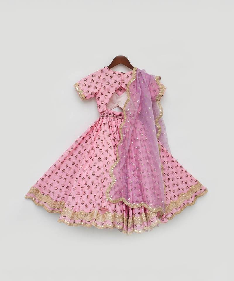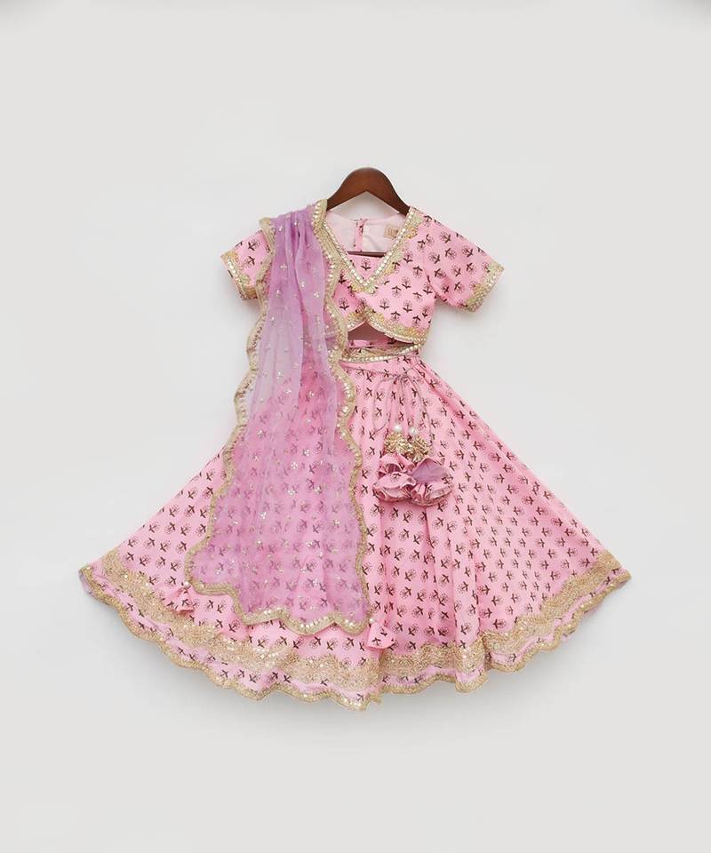 | Product Description | Amplify Your Little Heart's Wardrobe With This Pink Color Printed Cotton Lehenga. Featuring V Neck With Zip At The Back, Elbow Sleeves And Golden Finishing Overall. Paired With A Organza Sequins Boti Dupatta With Golden Scalp Finishing. This Set Has An Elegant Touch With A Subtle Color Combination And Decent Embroidery Work. |
