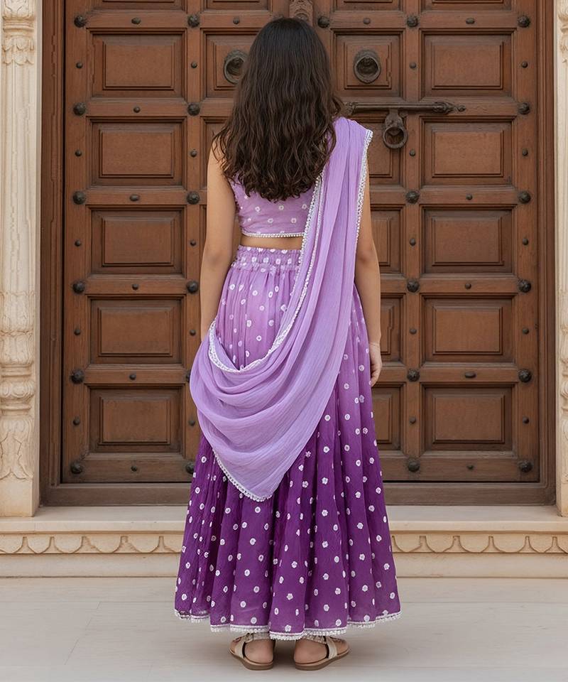 | Product Description | This Purple Embroidered Chanderi Lehenga Set Exudes Classic Elegance And Festive Charm. Crafted From Lightweight Chanderi Fabric, It Features Intricate Embroidery That Adds A Refined, Graceful Touch. Perfect For Weddings And Celebrations, It Offers A Timeless Blend Of Comfort And Traditional Sophistication.