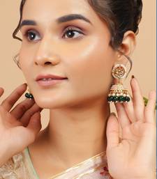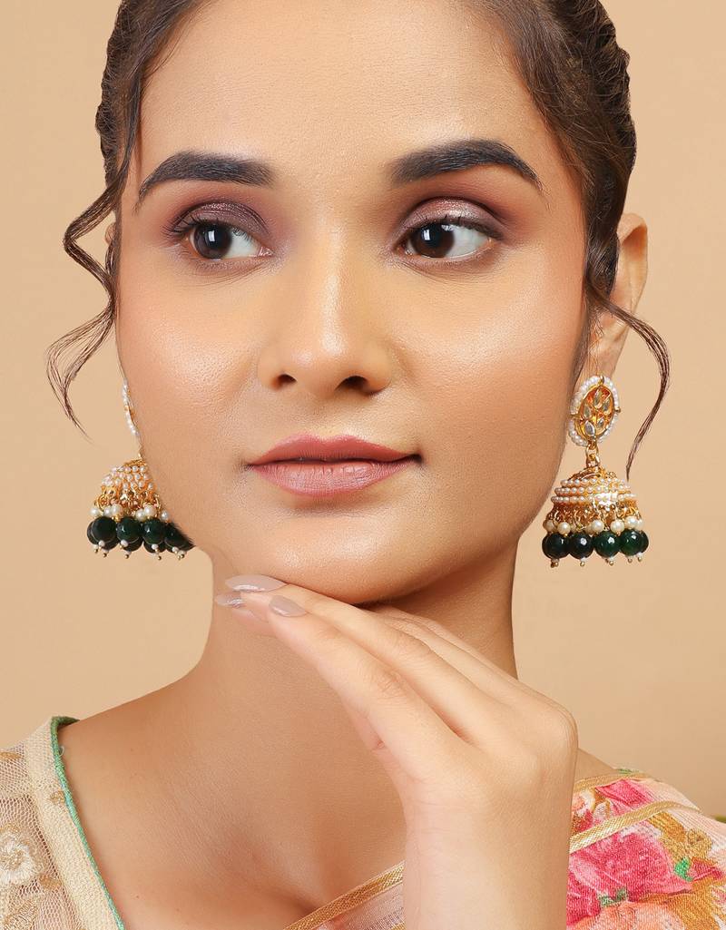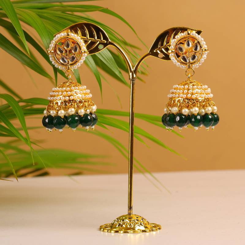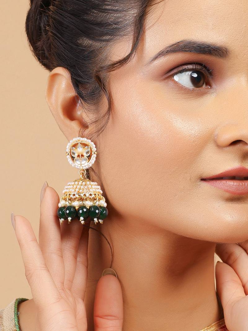 | Product Name | Kundan Jhumka Earrings With Green Beads & Pearl | |