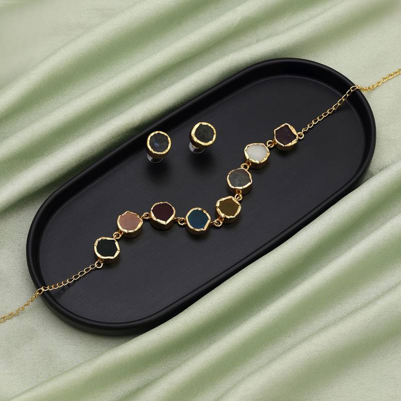 | Product Description | Adjustable Chain | Necklace Length: 16.00 Cm X Width: 1.50 Cm | Earring Length: 1.50 Cm X Width: 1.50 Cm | Metal: Brass With Good Quality Gold Plated | Color: Assorted | Stone: Monalisa Stone | Gross Weight: 48.00 Grams | Package Content: 1 Piece Of Necklace/1 Pair Of Earrings | Back Finding: Post With Friction Back X Earring Style: Stud |
