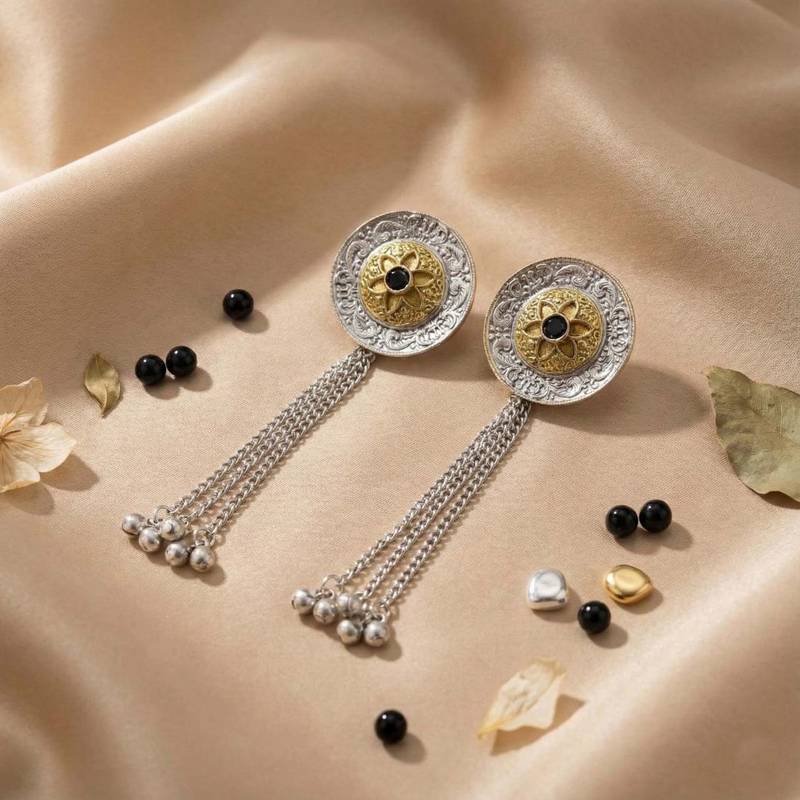 Product Name Black Color Oxidised Earrings Featuring Striking Dual Tone Contrast Ideal For Strong Statement Fashion