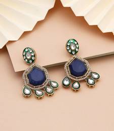 Product Description | Earring Length: 5.00 Cm X Width: 2.70 Cm | Metal: Alloy With Good Quality Gold Plated | Color: Blue | Stone: Kundan | Gross Weight: 32.00 Grams | Package Content: 1 Pair Of Earring | Back Finding: Post With Friction Back X Earring Style: Dangle |