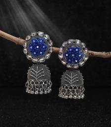 Product Description | Earring Length: 5.30 Cm X Width: 2.00 Cm | Metal: Alloy With Good Quality Silver Plated | Color: Blue | Stone: Glass Stone | Gross Weight: 21.00 Grams | Package Content: 1 Pair Of Earring | Back Finding: Post With Friction Back X Earring Style: Jhumka |