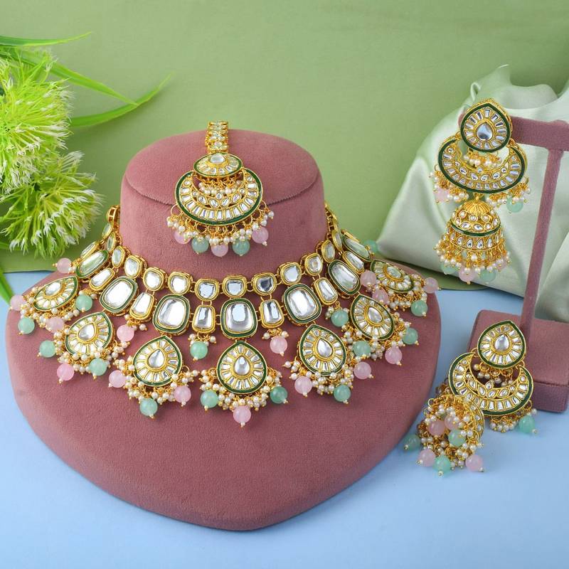 Product Name | Dual Pink & Pista Green Color Kundan Necklace Set For Festive Look | |
