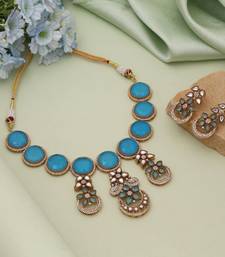 | Product Description | Adjustable Rope | Necklace Length: 22.00 Cm X Width: 7.80 Cm | Earring Length: 4.20 Cm X Width: 2.20 Cm | Metal: Brass With Good Quality Gold Plated | Color: Firozi | Stone: American Diamond & Monalisa Stone | Gross Weight: 123.00 Grams | Package Content: 1 Piece Of Necklace/ 1 Pair Of Earring | Back Finding: Post With Friction Back X Earring Style: Dangle |