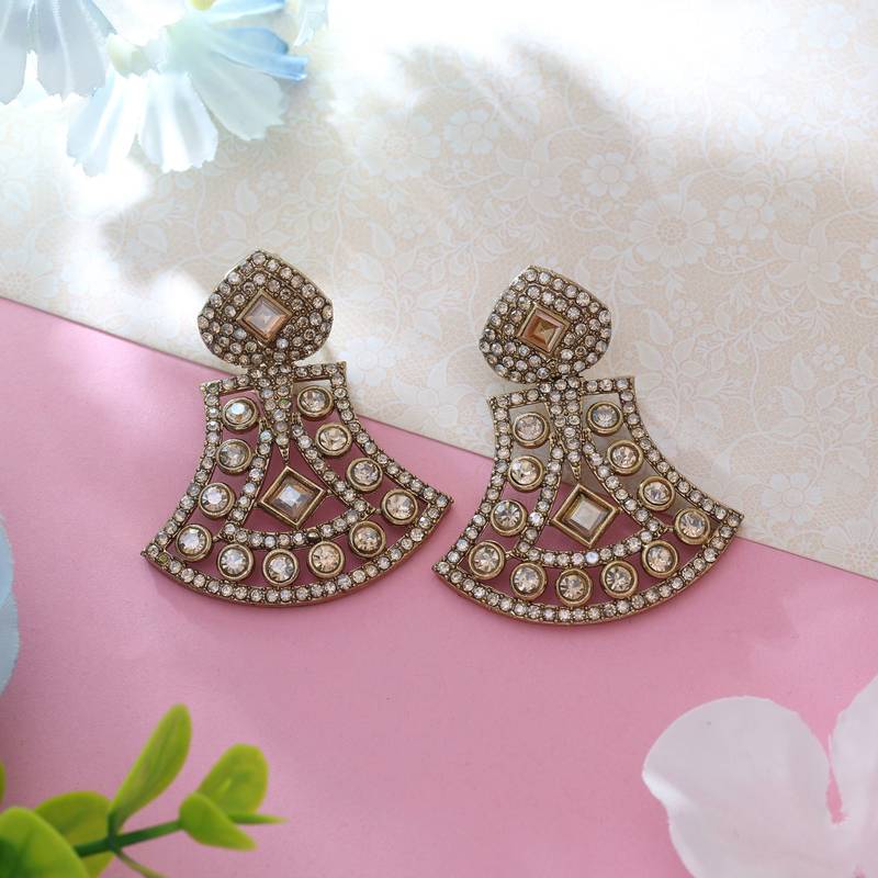 | Product Description | Earring Length: 4.70 Cm X Width: 3.80 Cm | Metal: Alloy With Good Quality Gold Plated | Color: Gold | Stone: Glass Stone | Gross Weight: 15.00 Grams | Package Content: 1 Pair Of Earring | Back Finding: Post With Friction Back X Earring Style: Dangle |