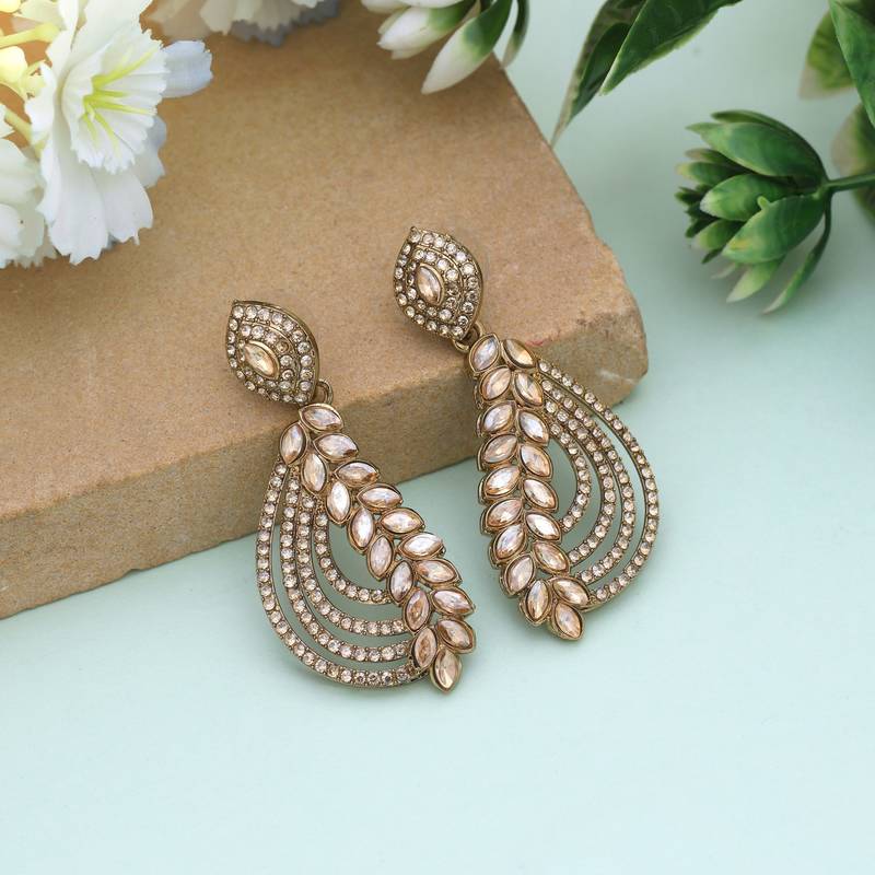 | Product Description | Earring Length: 6.00 Cm X Width: 2.50 Cm | Metal: Alloy With Good Quality Gold Plated | Color: Gold | Stone: Glass Stone | Gross Weight: 14.00 Grams | Package Content: 1 Pair Of Earring | Back Finding: Post With Friction Back X Earring Style: Dangle |